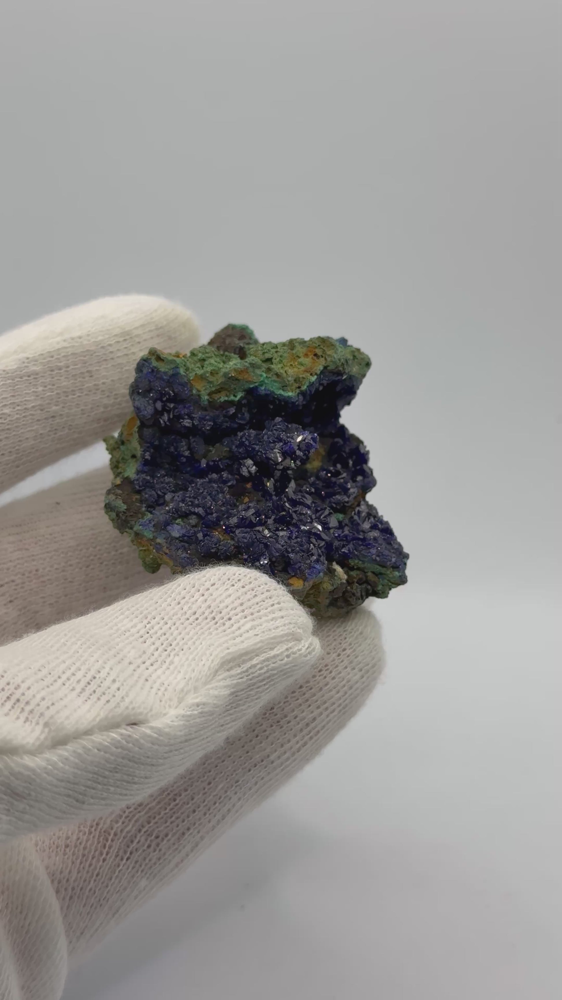 Gorgeous specimen of Azurite and Malachite from Anhui, China. Has nice luster on the Azurite crystals.