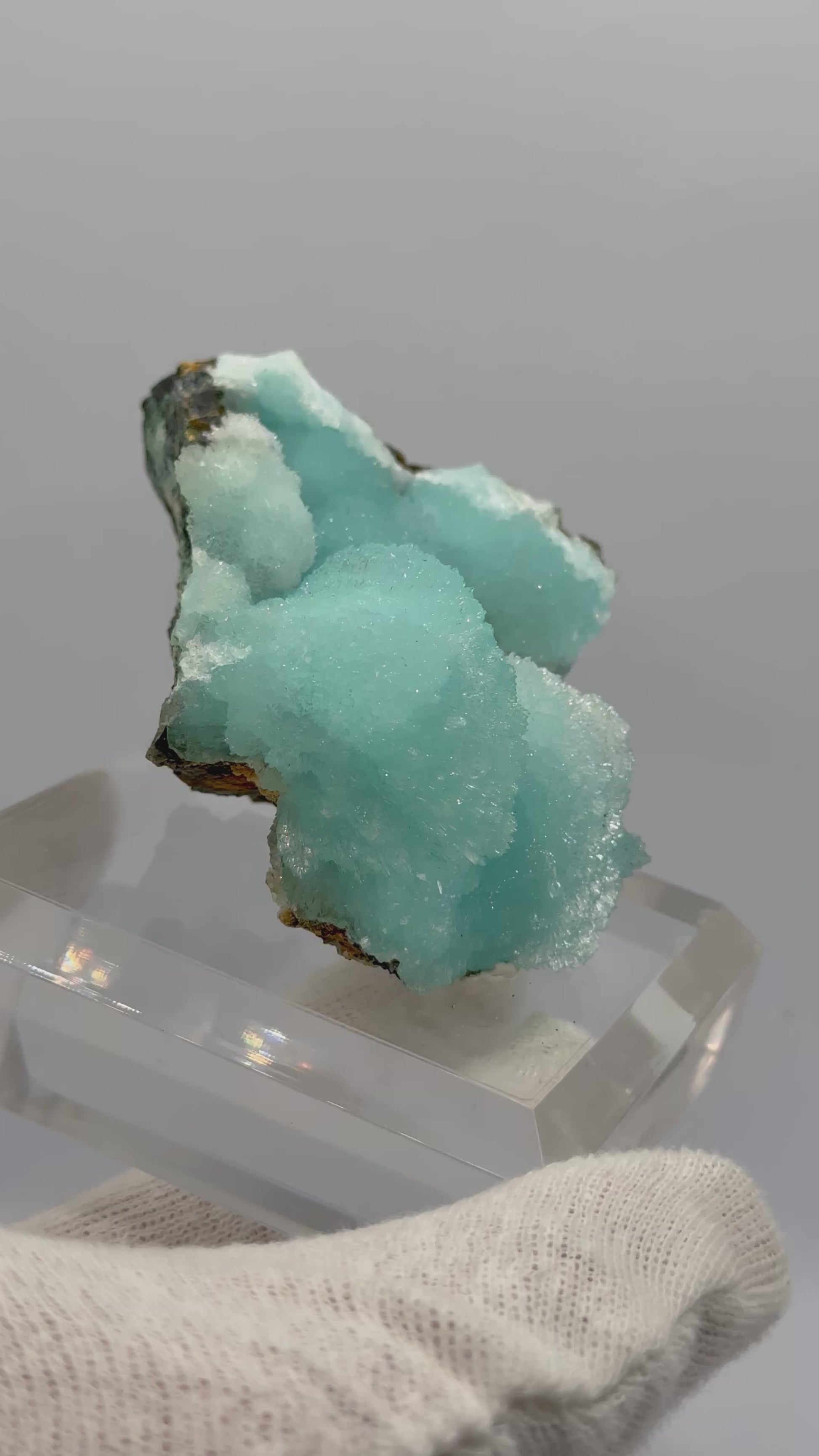 High grade Blue Aragonite specimen with super blue sparkly crystals from Wenshan Mine, China. *Acrylic base not included, sold separately.*