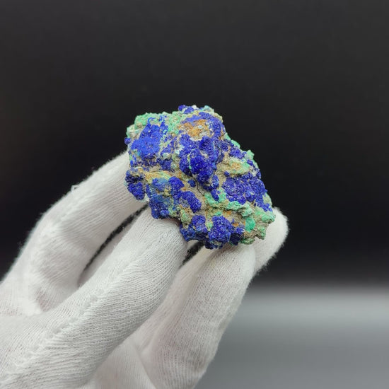 Rare Blueberry Azurite & Malachite specimen from Aouli, Morocco. The Azurite formations are resembling blueberries!