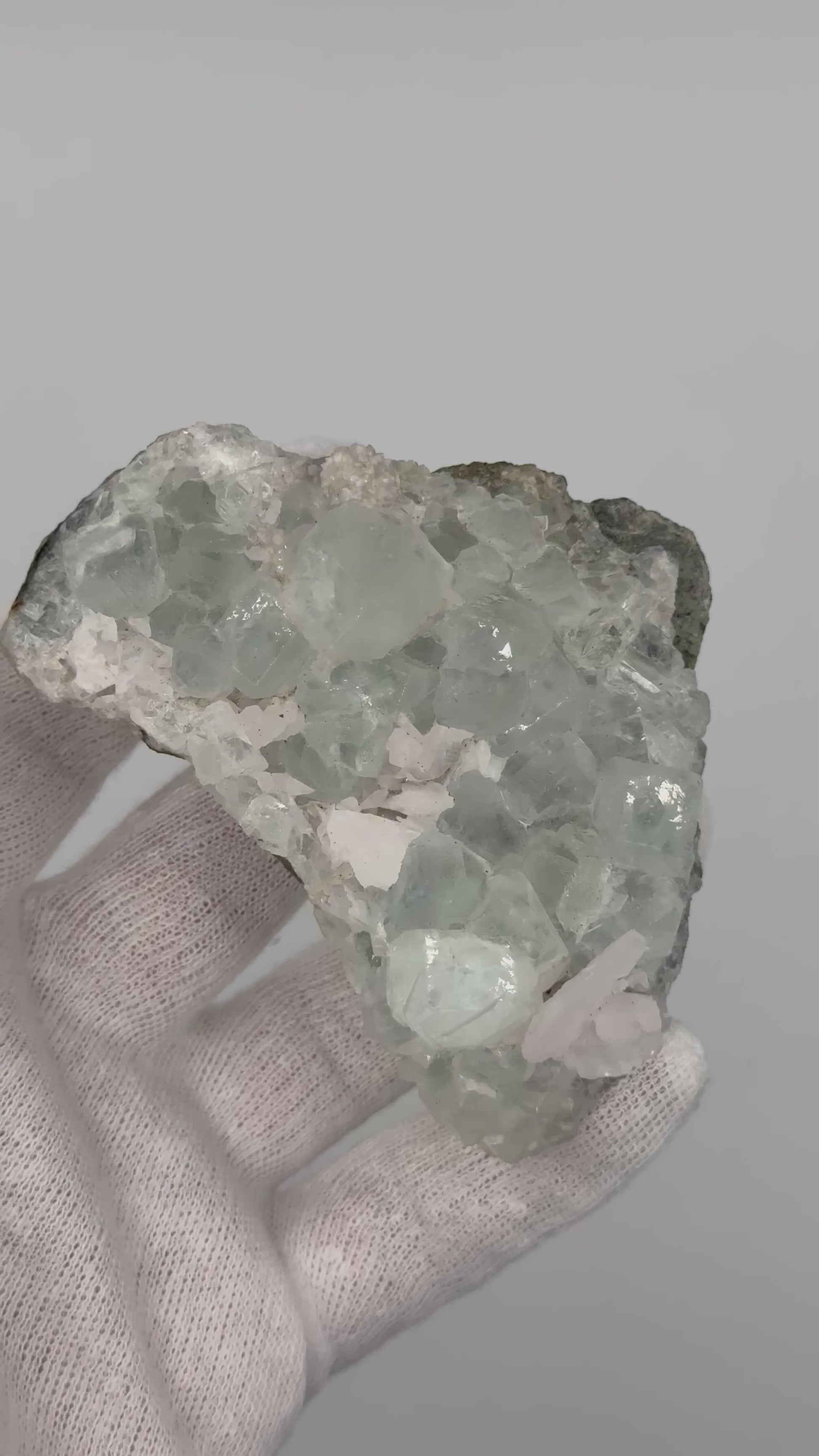 Stunning pale blue-light green Fluorite with Calcite from Xianghualing Mine, Chenzhou, Hunan, China.