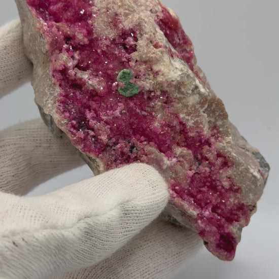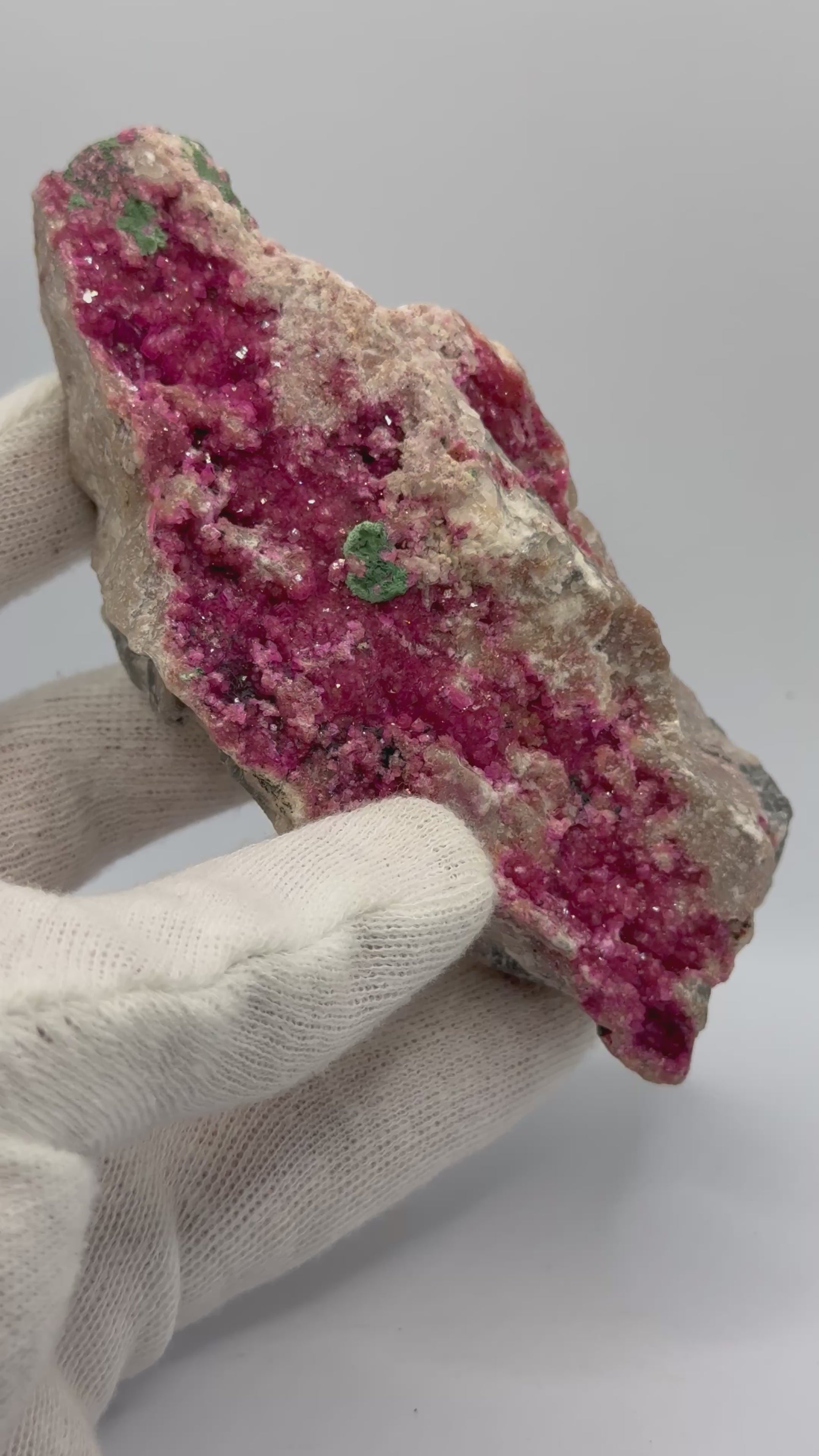 Super vibrant, deep pink-magenta colour with malachite from Congo.