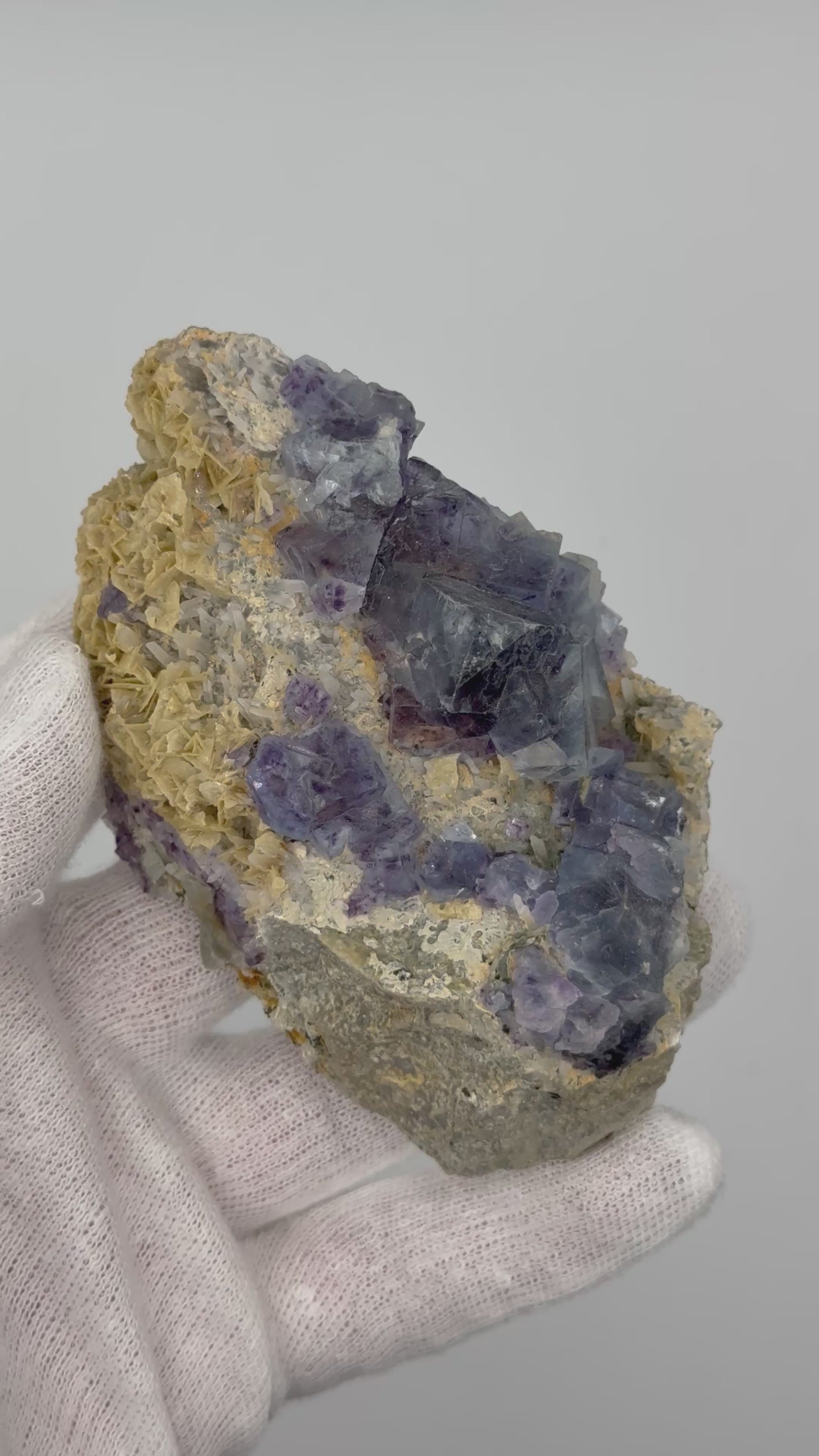 Beautiful light-blue, purple Fluorite with Muscovite from Yindu Ag-Pb-Zn Deposit, Inner Mongolia, China.