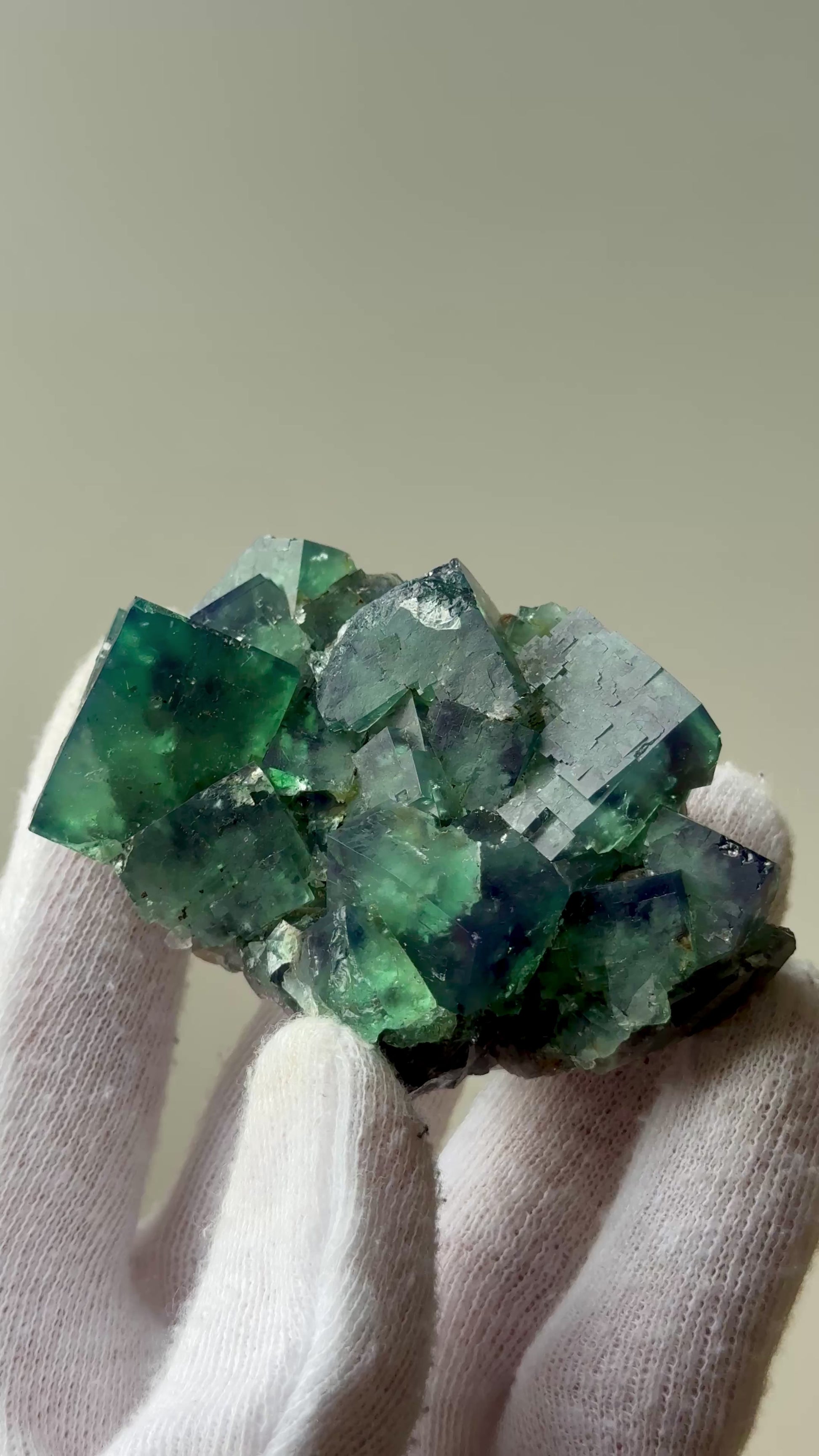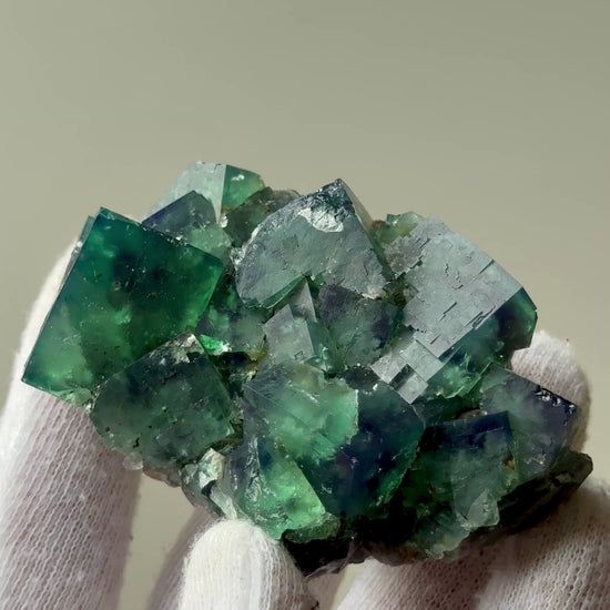 Fluorite "Truffle Pig Pocket" from Diana Maria Mine, England. It presents as Green under no UV and exhibits a strong daylight fluorescence turning a deep dark-blue in natural daylight.