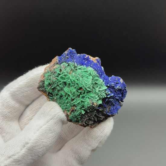 Rare Malachite & Azurite after Barite Pseudomorph specimen from Aouli, Morocco.