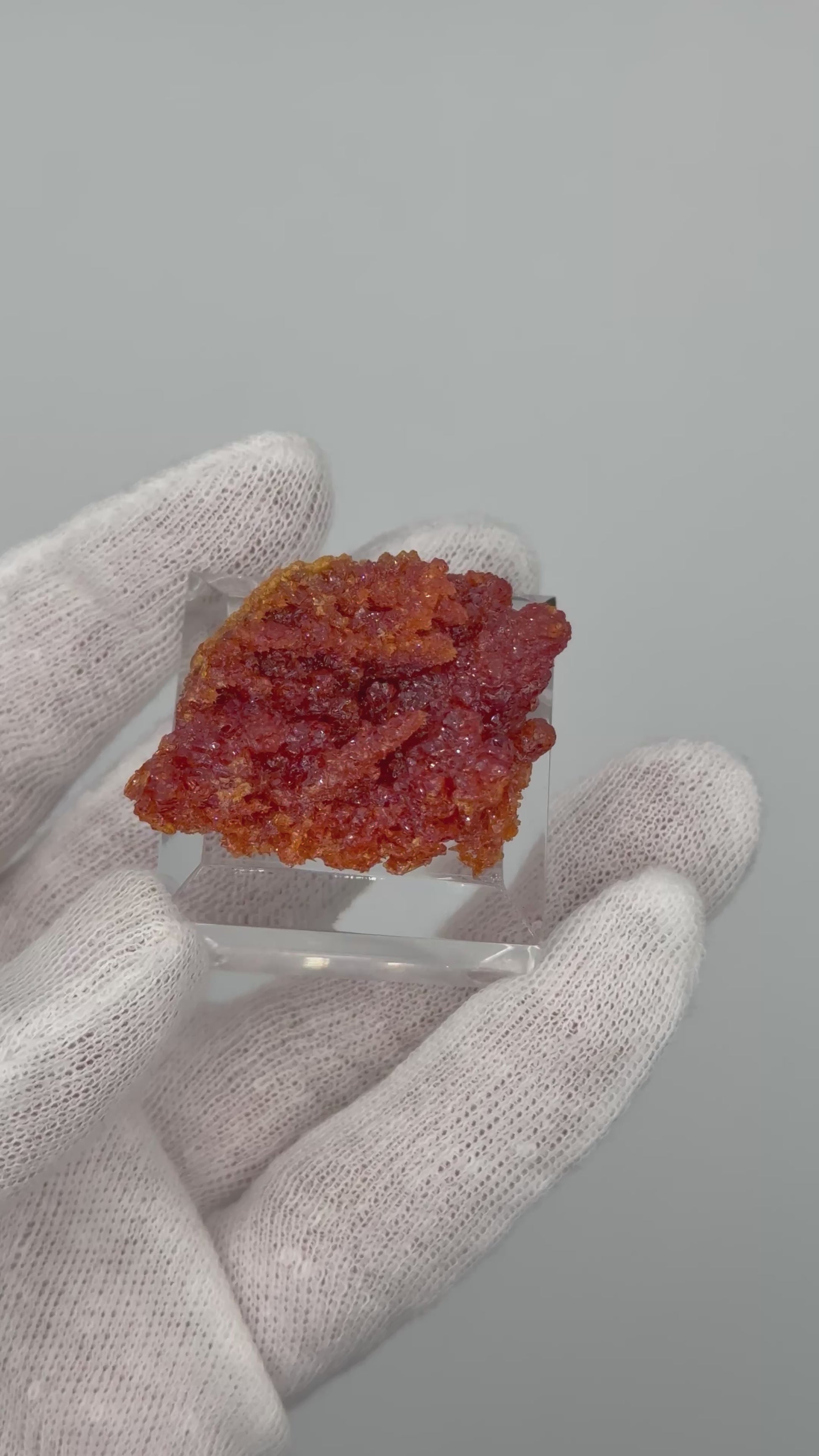 Stunning Orange-Red Zincite specimen from Lubin Mine, Poland. *Acrylic base not included, sold separately.*