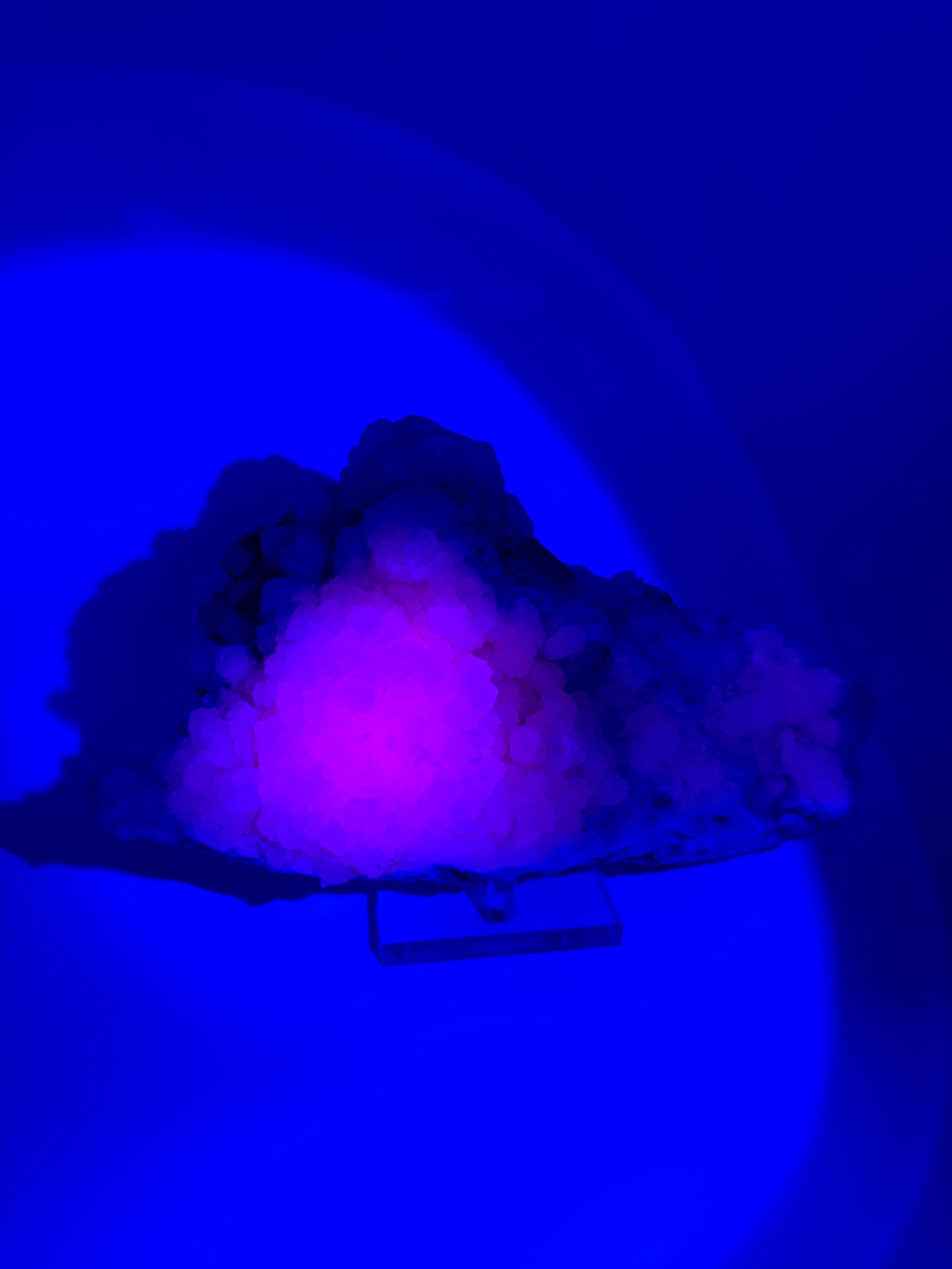 Beautiful UV reactive Quartz on Calcite specimen from Huanggang Fe-Sn Deposit, Inner Mongolia, China. UV's super bright pink using 395nm UV flashlight. *Stand not Included*.