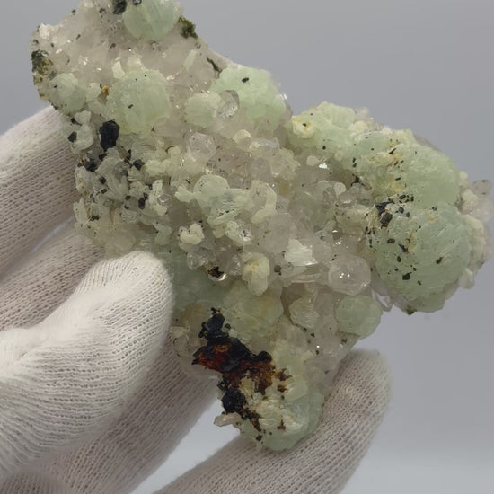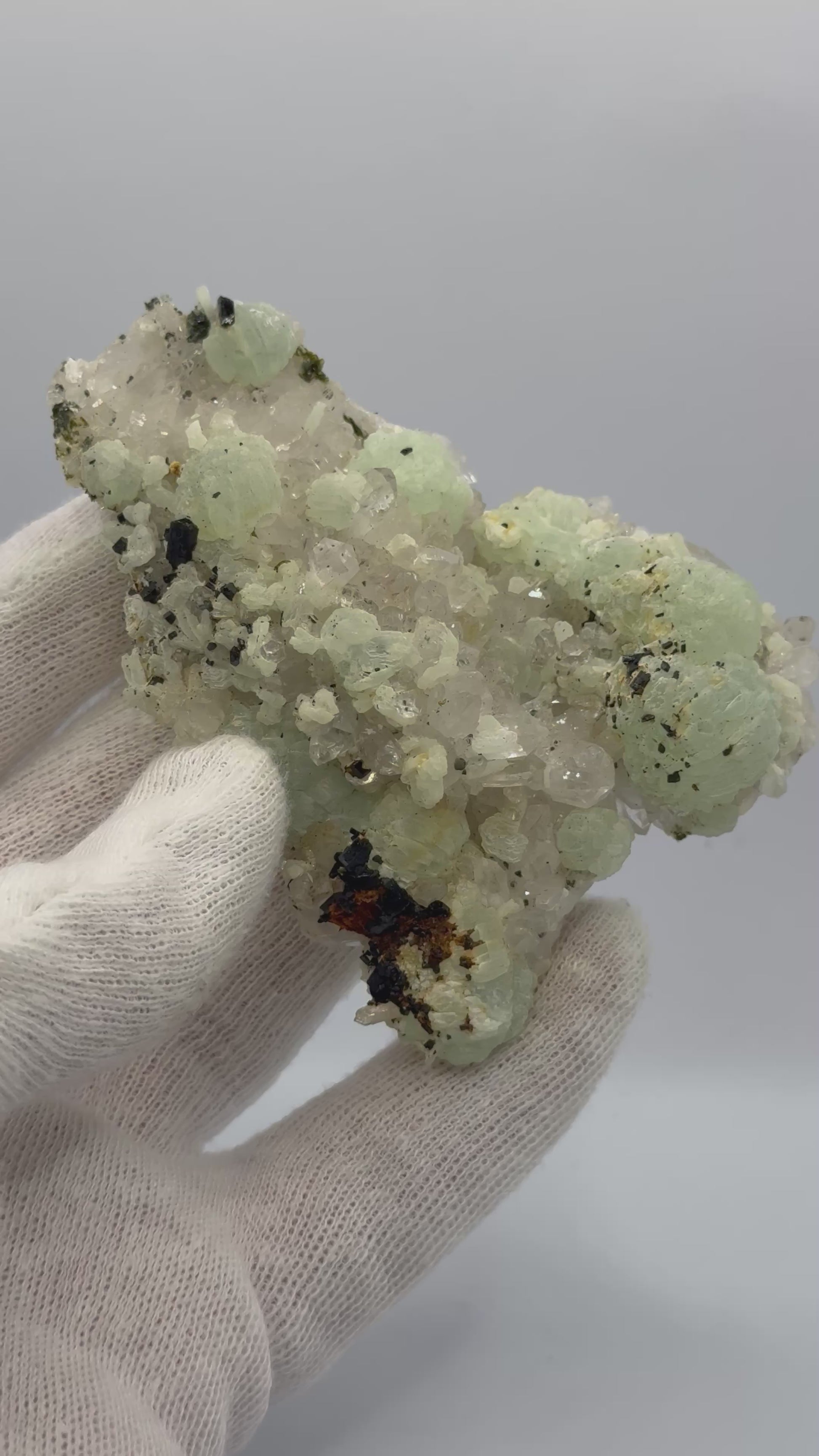 Pastel green Prehnite on Quartz with Epidote and Babingtonite occurences from Yunnan, China.