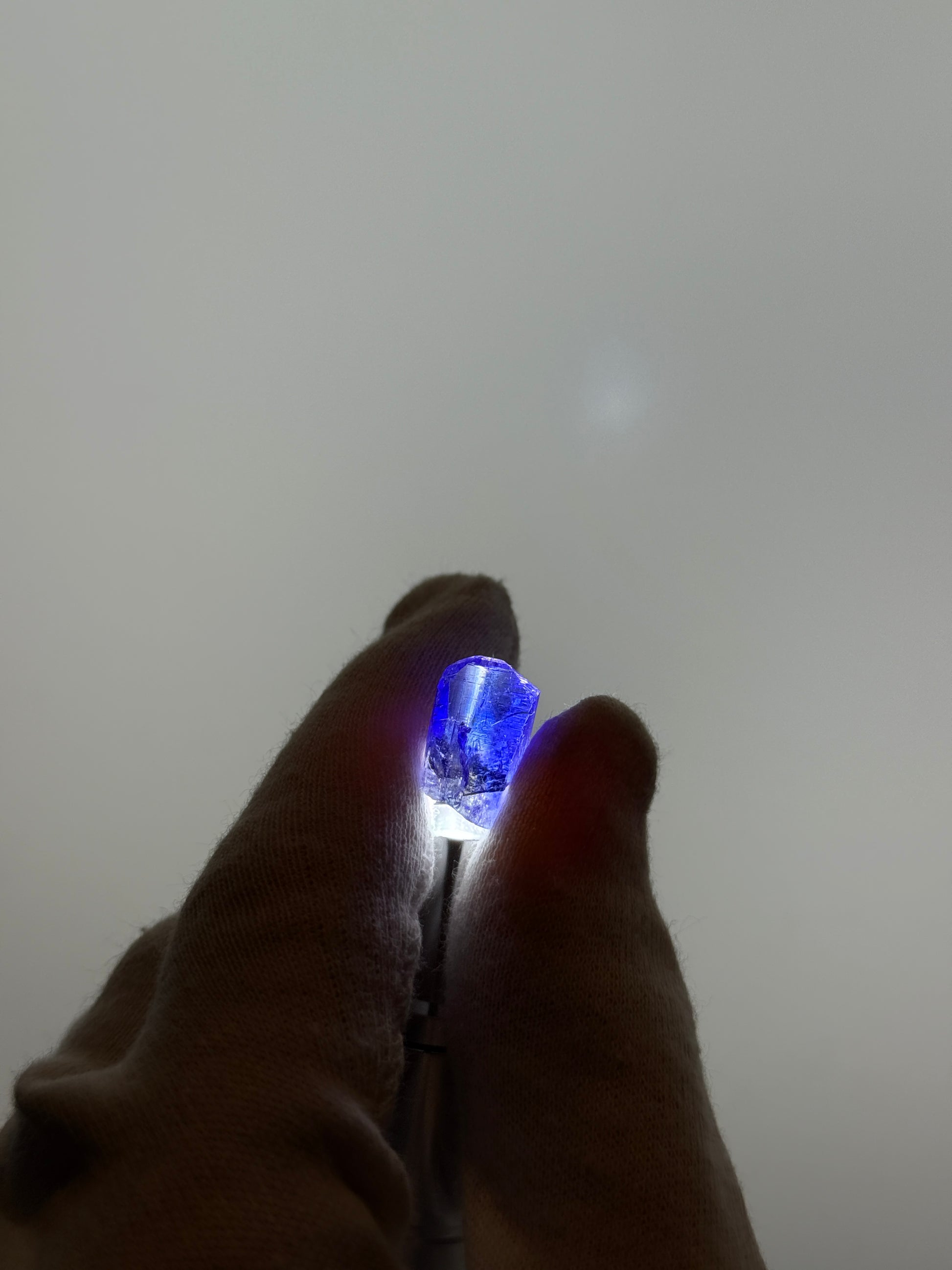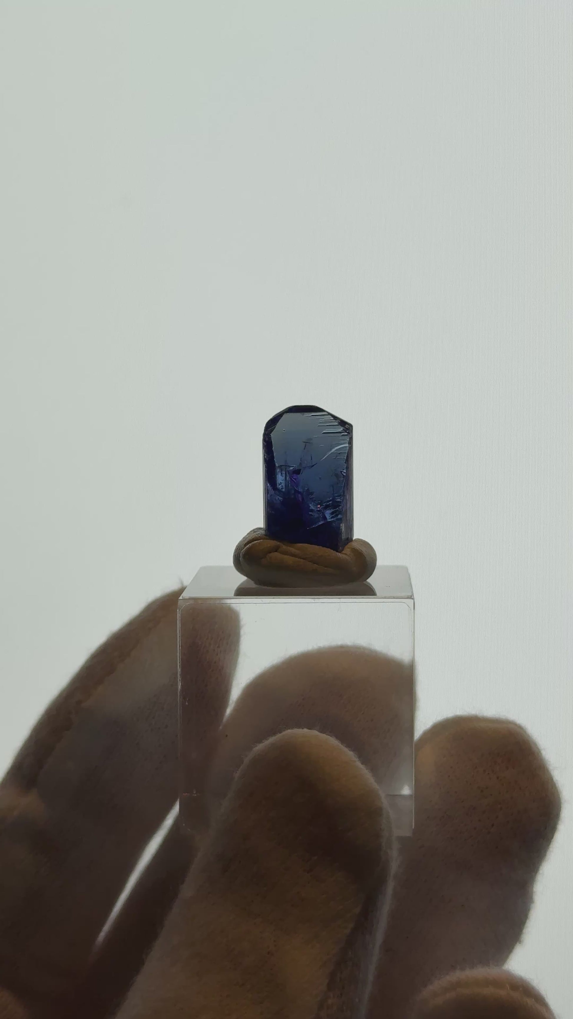 Natural unheated Tanzanite - 2.8g from Merelani Hills, Tanzania. Small Tanzanite with strong blue, very faint yellow, and deep purple colour array. Exceptional quality small Tanzanite with almost 75% internally flawless. *Acrylic base not included.*
