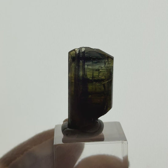 Natural unheated Tanzanite - 11.1g from Merelani Hills, Tanzania. Nice Tanzanite with strong blue, mild yellow-gold, and deep purple-pink colour array. Features an intense hot pink-purple colour when lit from below. *Acrylic base not included.*