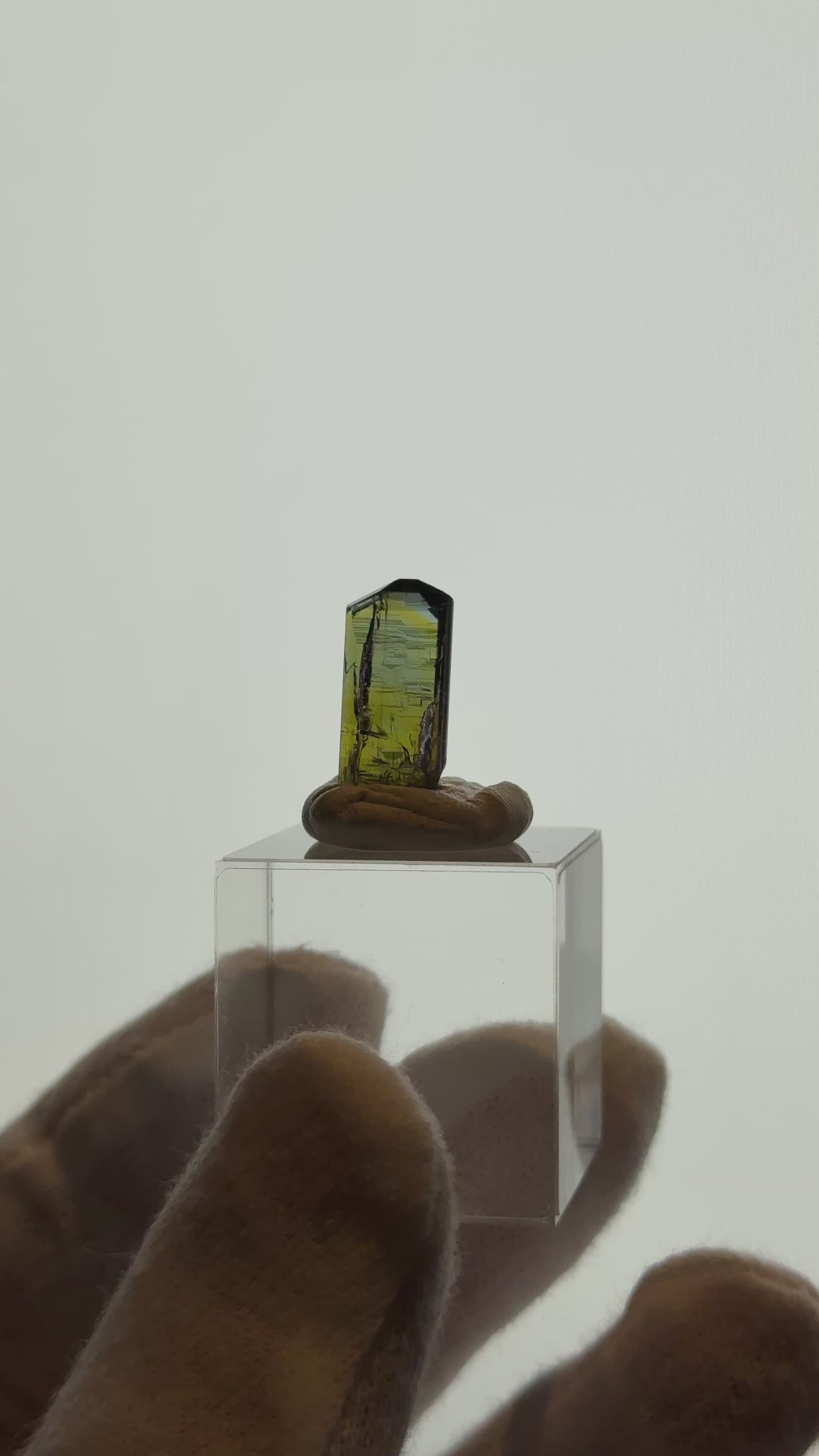 Natural unheated Tanzanite - 2.1g from Merelani Hills, Tanzania. Small Tanzanite with mild blue, mild yellow, and mild purple colour array. High quality small Tanzanite, almost internally flawless. Perfect size and shape to create a custom necklace or keep as a collectable in its current form. *Acrylic base not included.*