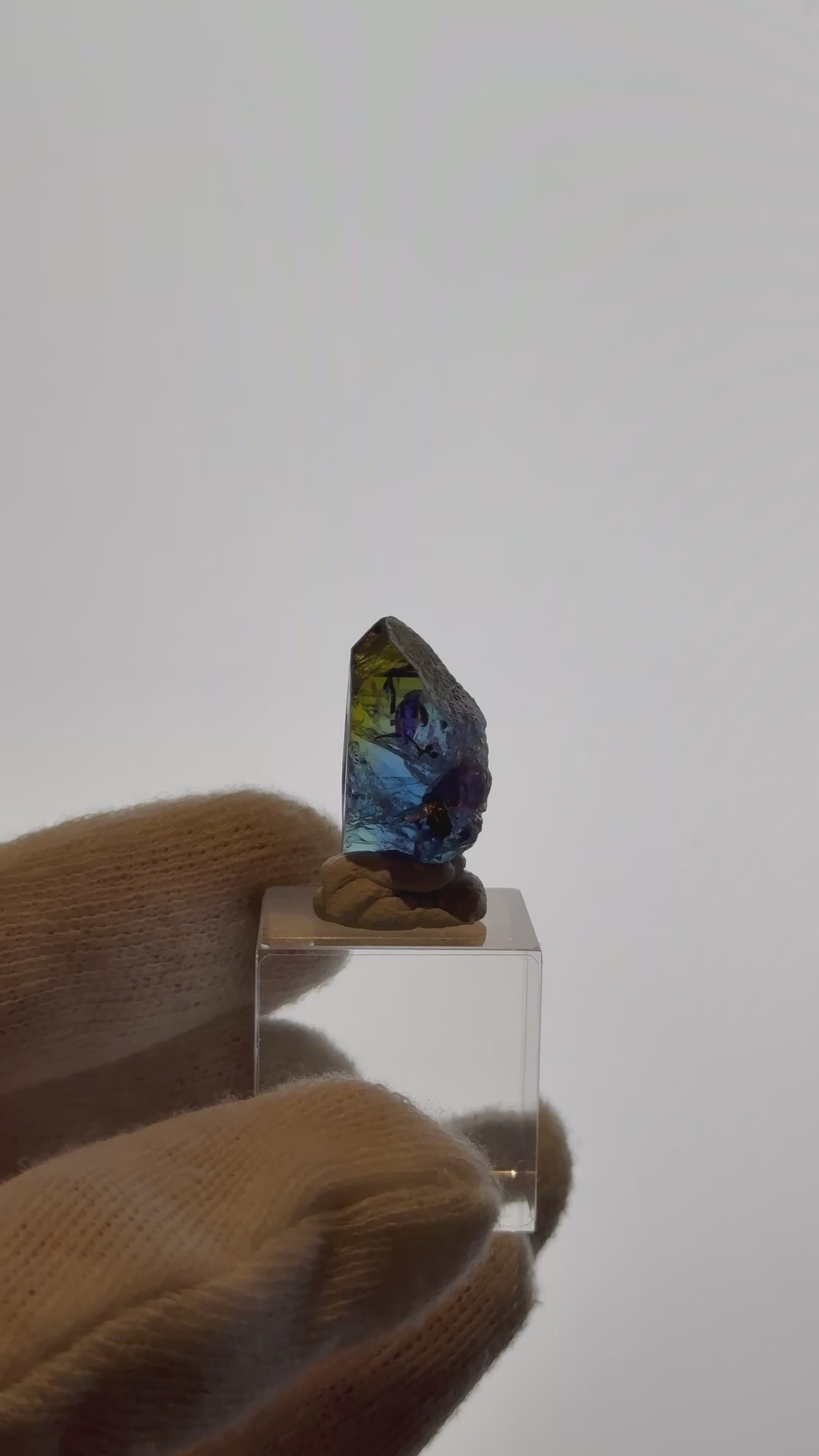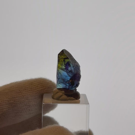 Natural unheated Tanzanite - 7.43g from Merelani Hills, Tanzania. Featuring good clarity with deep blue, strong gold, strong purple colour array. *Acrylic base not included.*
