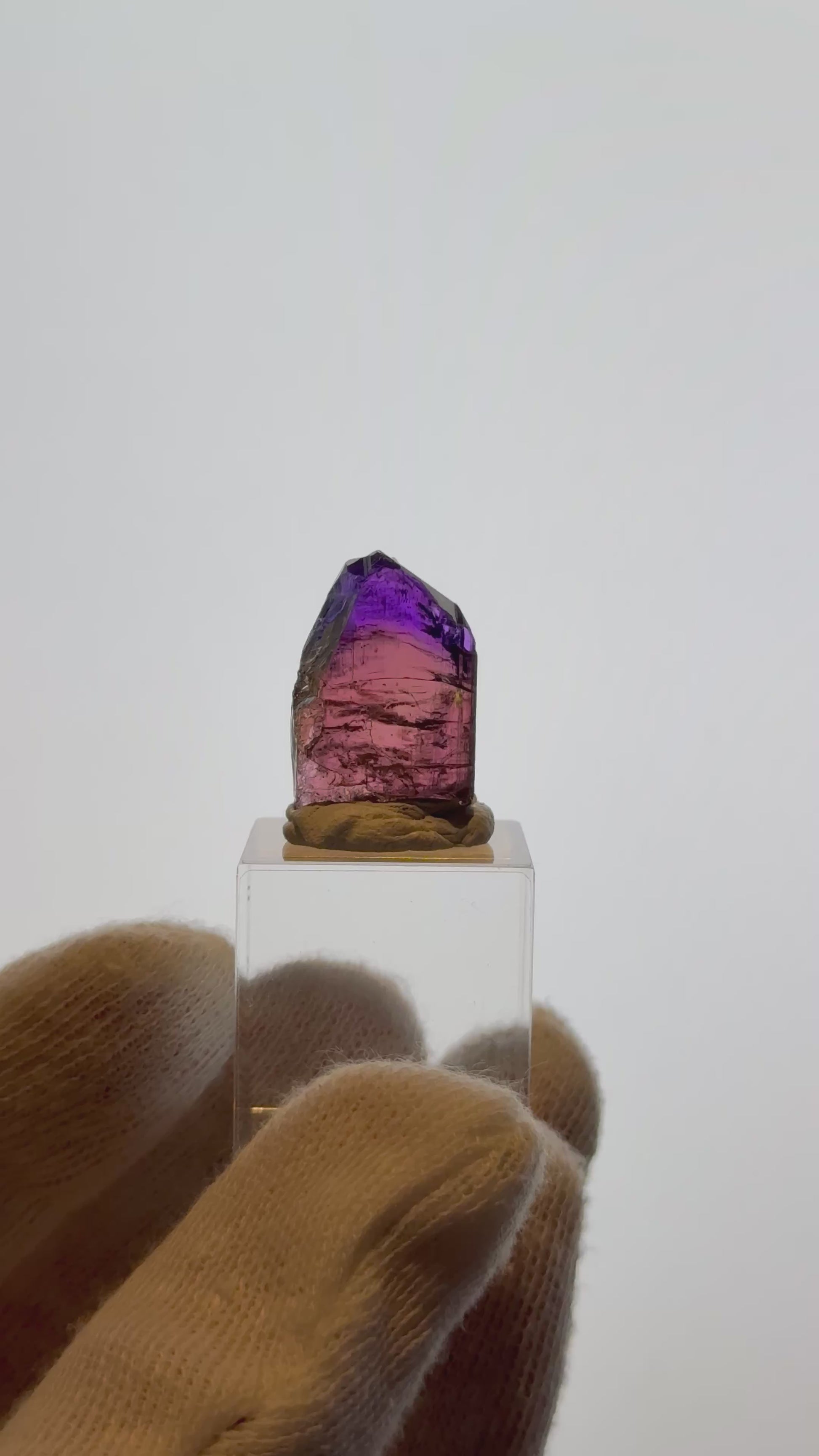 Natural unheated Tanzanite - 7.73g from Merelani Hills, Tanzania. Featuring a two-tone colour array with good clarity. Strong light blue-dark blue, deep orange, and pink-purple colour array. Features a strong cranberry/red in certain lighting when viewed from above/lit from below. A very unique piece of Tanzanite! *Acrylic base not included.*