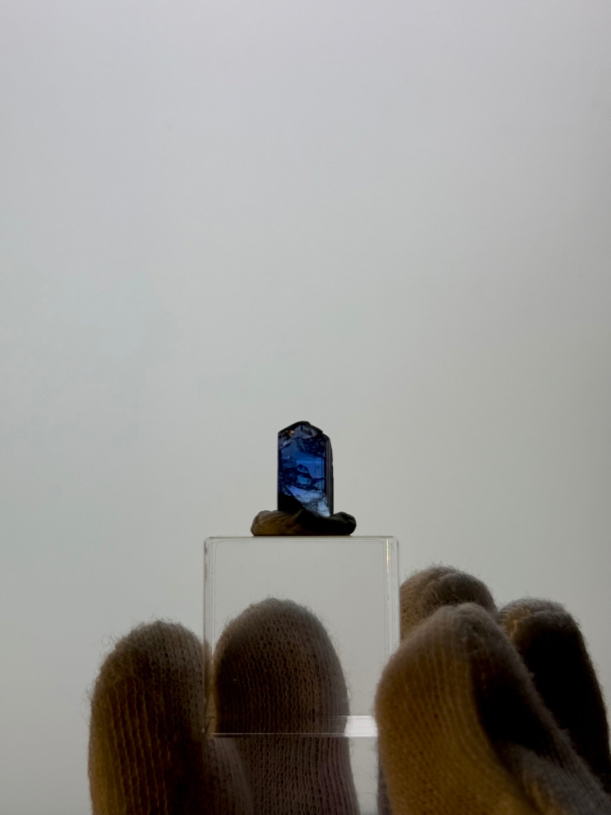 Natural unheated Tanzanite - 1.53g from Merelani Hills, Tanzania. Featuring good clarity with a strong blue, golden, and violet-pink colour array. *Acrylic base not included.*